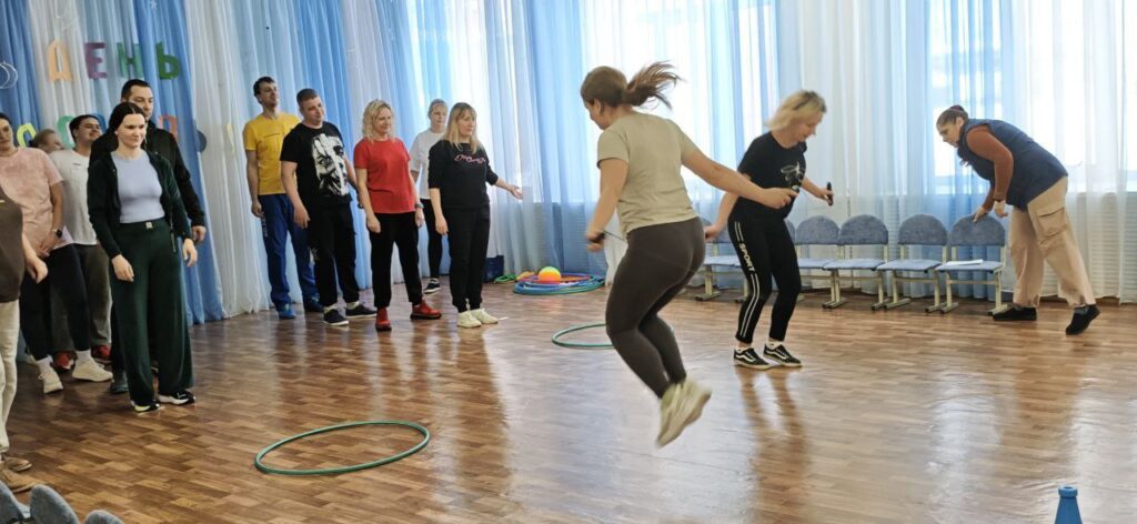 Команды поприветствовали друг друга и провели веселую разминку. Затем начались соревнования: эстафеты, игры, конкурсы, конкурс для капитанов, интеллектуальная и творческая паузы.